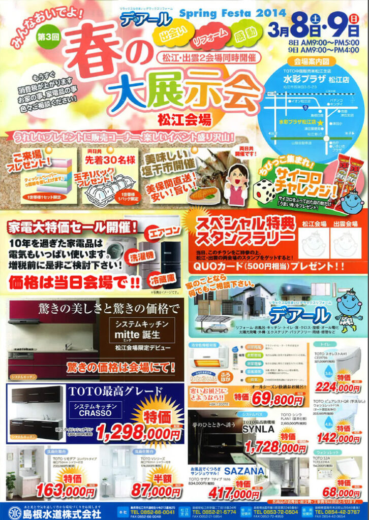 2014年3月8日(土)9日(日)、9時から、松江・出雲2会場同時開催