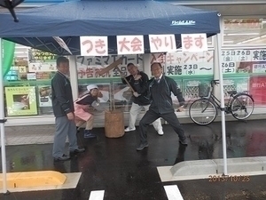 10月25日、ファミリーマート斐川支所前店オープン4ヶ月を記念して、餅の無料配布を行いました。