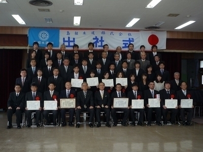 出社式では社長より新年のお言葉をいただき、優良社員、永年勤続社員12名が表彰を受けました。