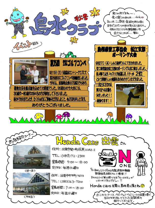 第35回SSCゴルフコンペ、季節のお話・新米、お店紹介コーナー(HONDA CARS出雲さん)、ほか