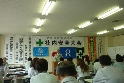 安全大会は、平成24年度全国安全スローガン「ルールを守る安全職場 みんなで目指すゼロ災害」の唱和から始まり、