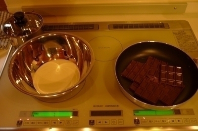 フライパンならわざわざ板チョコを刻んで入れなくてもいいですし、通電する面積が大きいので