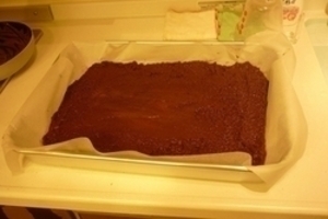 混ぜ合わせたら、バットにクッキングシートを敷いて流し込みます。