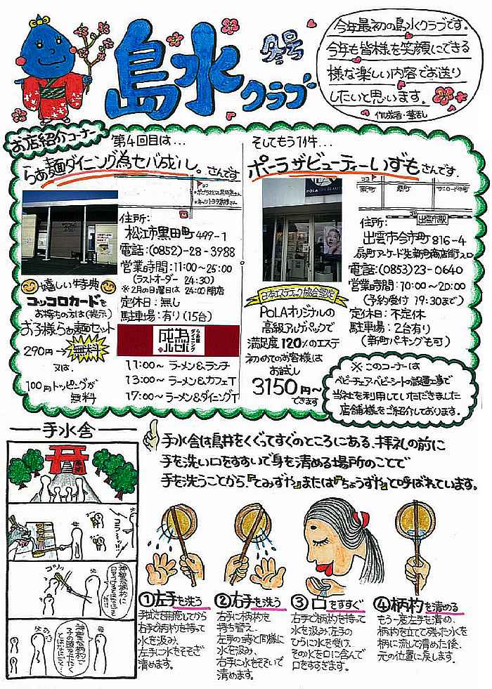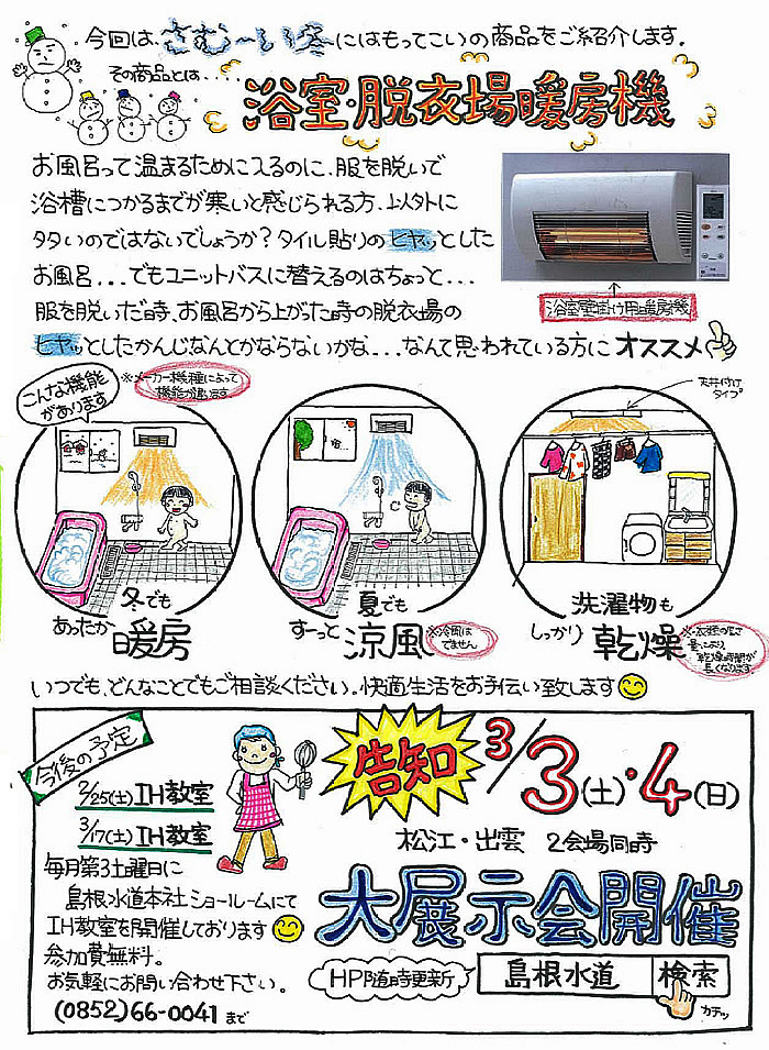 お店紹介(らあ麺ダイニング為セバ成ル、ポーラザビューティいずも)、社員紹介、浴室脱衣場暖房機、ほか
