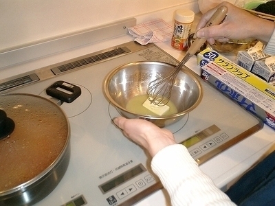 今回のメニューにあるドリアについては、皆さんご存知のとおり、ガスで作ると火加減に注意しても焦付くことがあったり、だまになりやすいという難点があるホワイトソースを作りました。