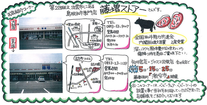 主な記事:営業一課の近況、お店紹介(藤増ストアー)、脱メタボ、水と油、ほか
