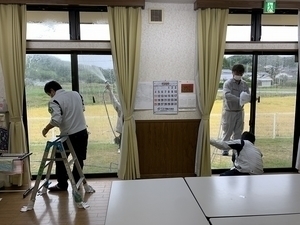 宍道町では福祉施設 みずうみの里さんで、窓の清掃やエアコンのフィルター清掃などを行いました。