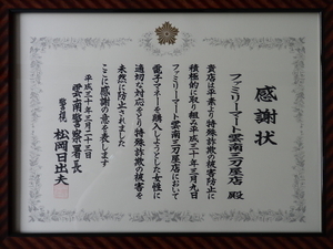 3月9日に来店されたお客様が電子マネーを購入しようとしたところ、不審に思い雲南警察署の方へ連絡しました。
