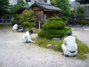 松江は松江市役所周辺、出雲は稲佐の浜周辺、雲南は永井隆記念館周辺を草刈り、ごみ拾いを行いました。