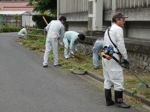各社の方々が朝早くから一生懸命草刈り、清掃に取り組んでおられました。