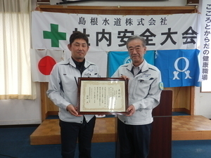 7月31日、「島根県立わかたけ学園施設整備(本館改修外給排水衛生設備)工事」の現場に於いて表彰いただきました。