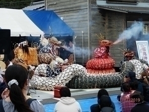 この日は、よさこい踊りから始まり、石見神楽の公演(たっぷり2時間)、たまごの早食いなどの催しが行われ会場は超満員でした。