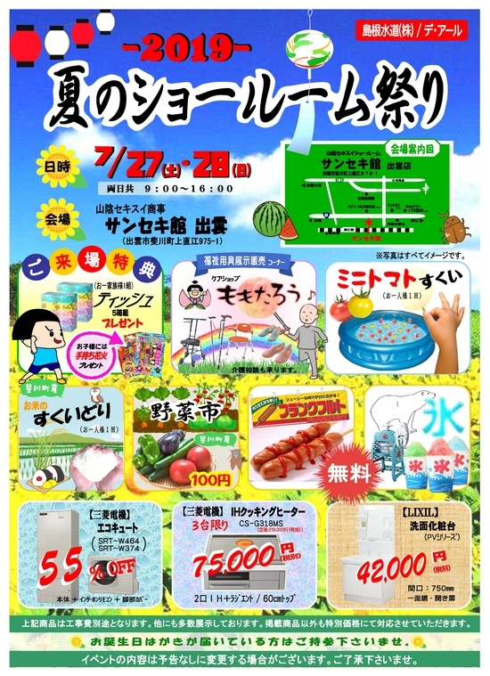 7月27日(土)、28日(日) 山陰セキスイ商事サンセキ館出雲
