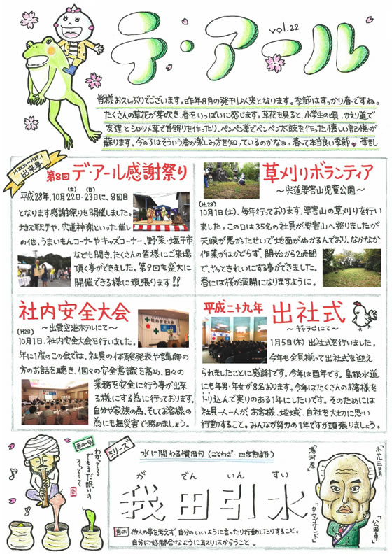 デアール感謝祭り、草刈ボランティア、社内安全大会、平成29年出社式