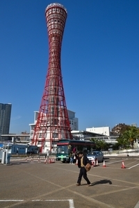 神戸ポートタワーをバックにムーンウォーク