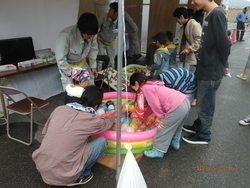 また、子供さんにも楽しんで頂ける様に、今年もキッズコーナーとして、射的、わなげ、ヨーヨーつりを工務課のおじさん達が主体となって準備してくれました。