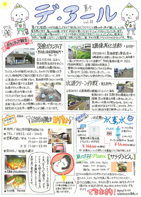 災害ボランティア、環境美化活動、水源クリーン作戦、お店紹介コーナーお好み焼きかずちょ ほか